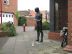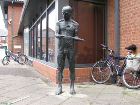 Entitled mapping, this bronze and steel sculpture was produced as the result of a collaboration between sculptor Lawrence Edwards and book artist Les Bicknell. In all, three sculpted figures were created who are seen discovering, contemplating and understanding the Meridian Line which is represented by a steel ribbon engraved with text by local people, that appears and disappears as it traces the path of the Line through and around the town.